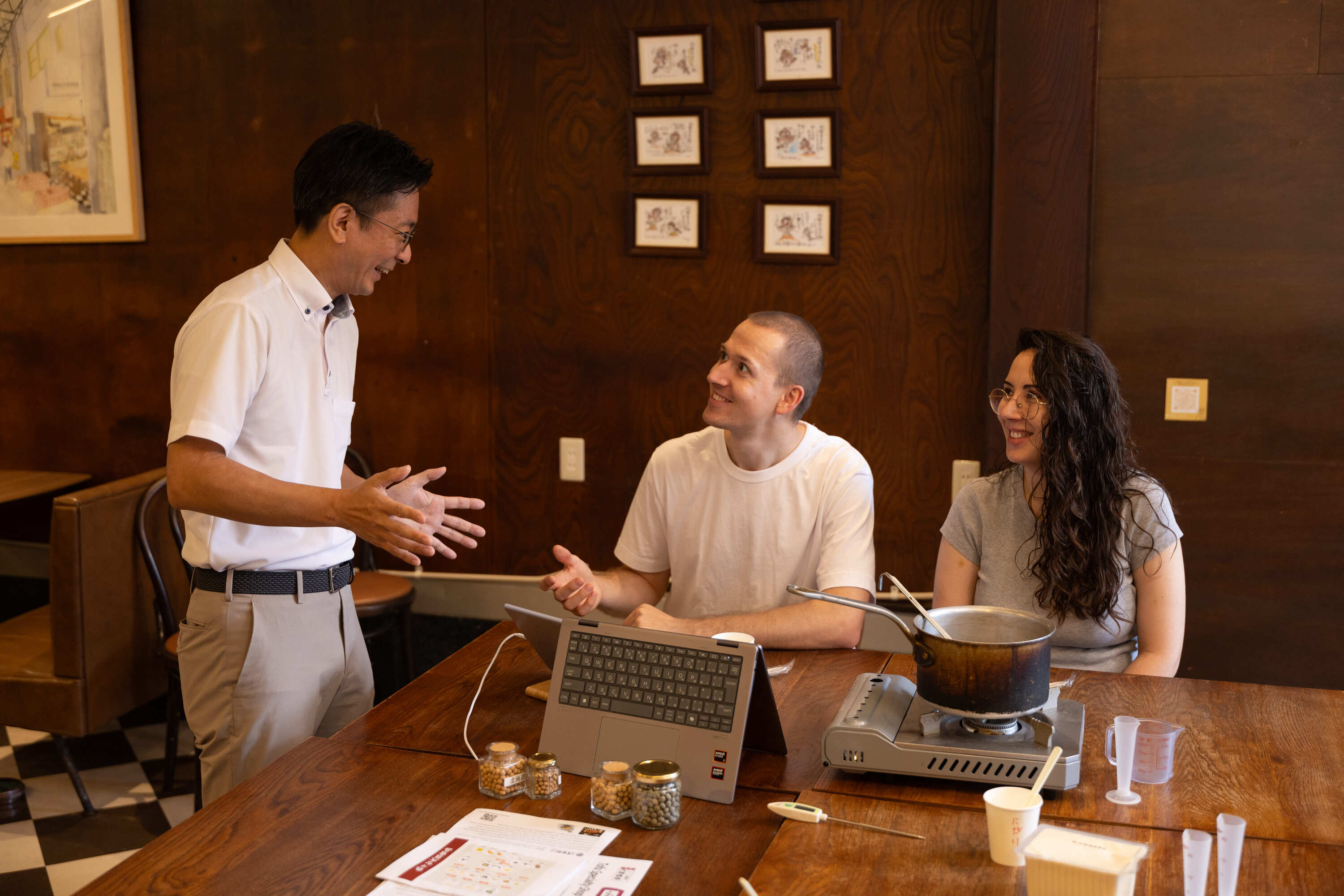 參加豆腐製作體驗,在百年老店職人的帶領下,一探名古屋的飲食文化。在職人一步步的指導下,您將親手製作豆腐,並品嚐新鮮溫熱的美味,感受簡單、細膩又令人難忘的滋味。 您還可以享用味噌田樂,將豆腐串起來,淋上名古屋濃郁的深色味噌,這種風味自德川幕府時代以來就一直備受珍視。 本工作坊於日本文化村舉行,這裡有神社、百年老店和時尚咖啡館,傳統與現代生活在此交融,呈現獨特的氛圍。