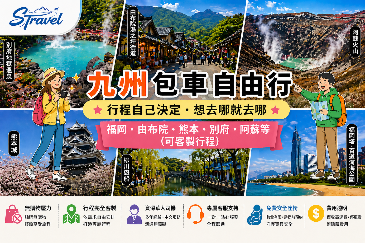 九州包車全境自由行: 福岡・由布院・熊本・別府・阿蘇等 (自訂行程,也可聯絡客服推薦行程!)