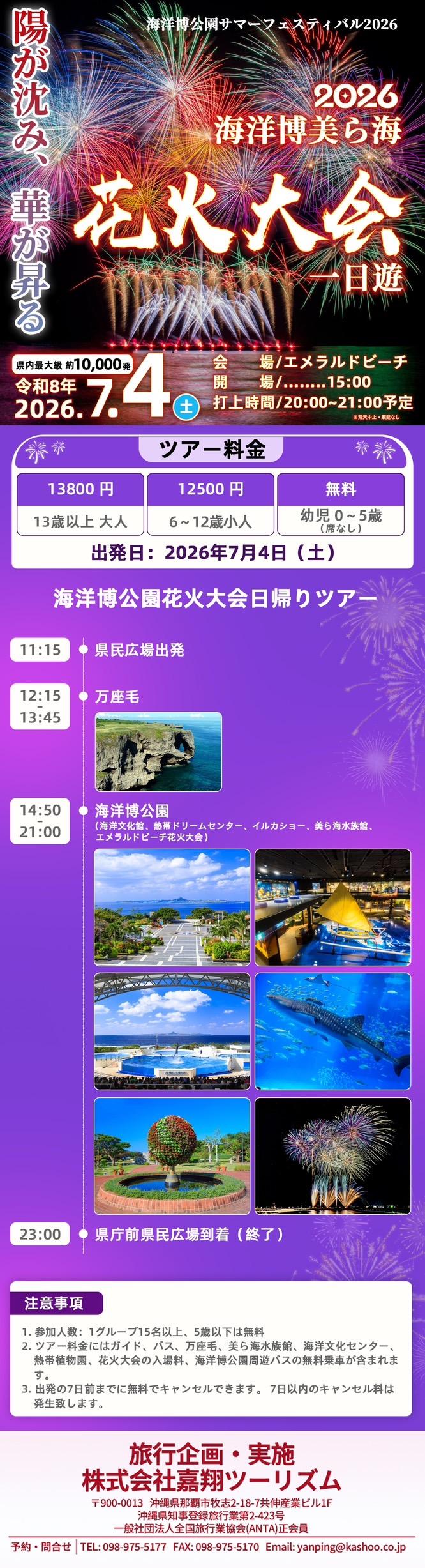 - 我們將充分利用場地優勢,打造一場震撼人心的煙火表演,創造出只有在海洋博覽公園才能看到的迷人「沖繩煙火娛樂」。