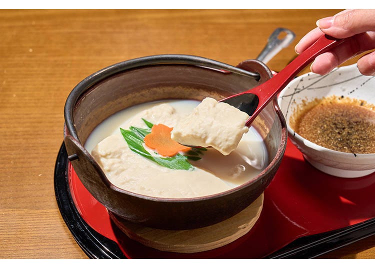 湯豆腐(880日圓)。搭配特製芝麻醬享用。