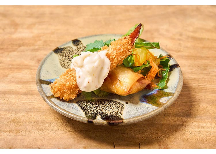 看似炸蝦的這道料理,其實是炸紅蘿蔔。是一道兼具視覺趣味的料理。