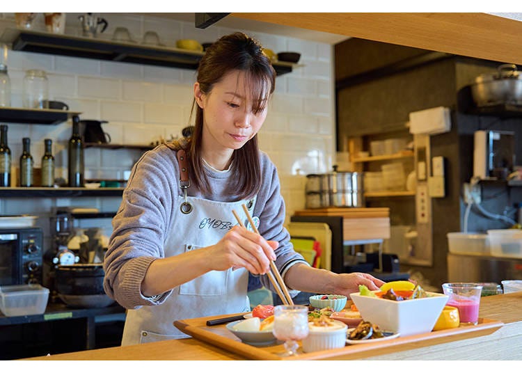 老闆古川女士是一位為運動員提供飲食支援的專家,為了改善現代人蔬菜攝取不足的問題,店裡推出了份量十足的午餐,一份餐點就能滿足每日所需蔬菜量的約七成。雖然使用了大量的蔬菜,但她在調味上下足了工夫,希望能讓顧客愉快地吃到最後一口。
