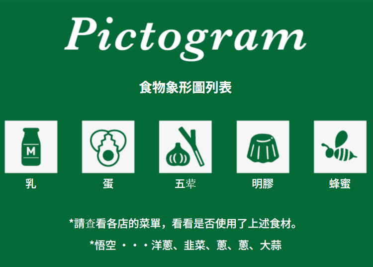 網站內以簡易圖示標示了各項菜單所使用的食材,讓人可以一目了然,安心選擇。網站也支援英語、中文等多國語言,詳細資訊可直接在下方網站查看。快依照旅程規劃,找出自己喜愛的料理吧!