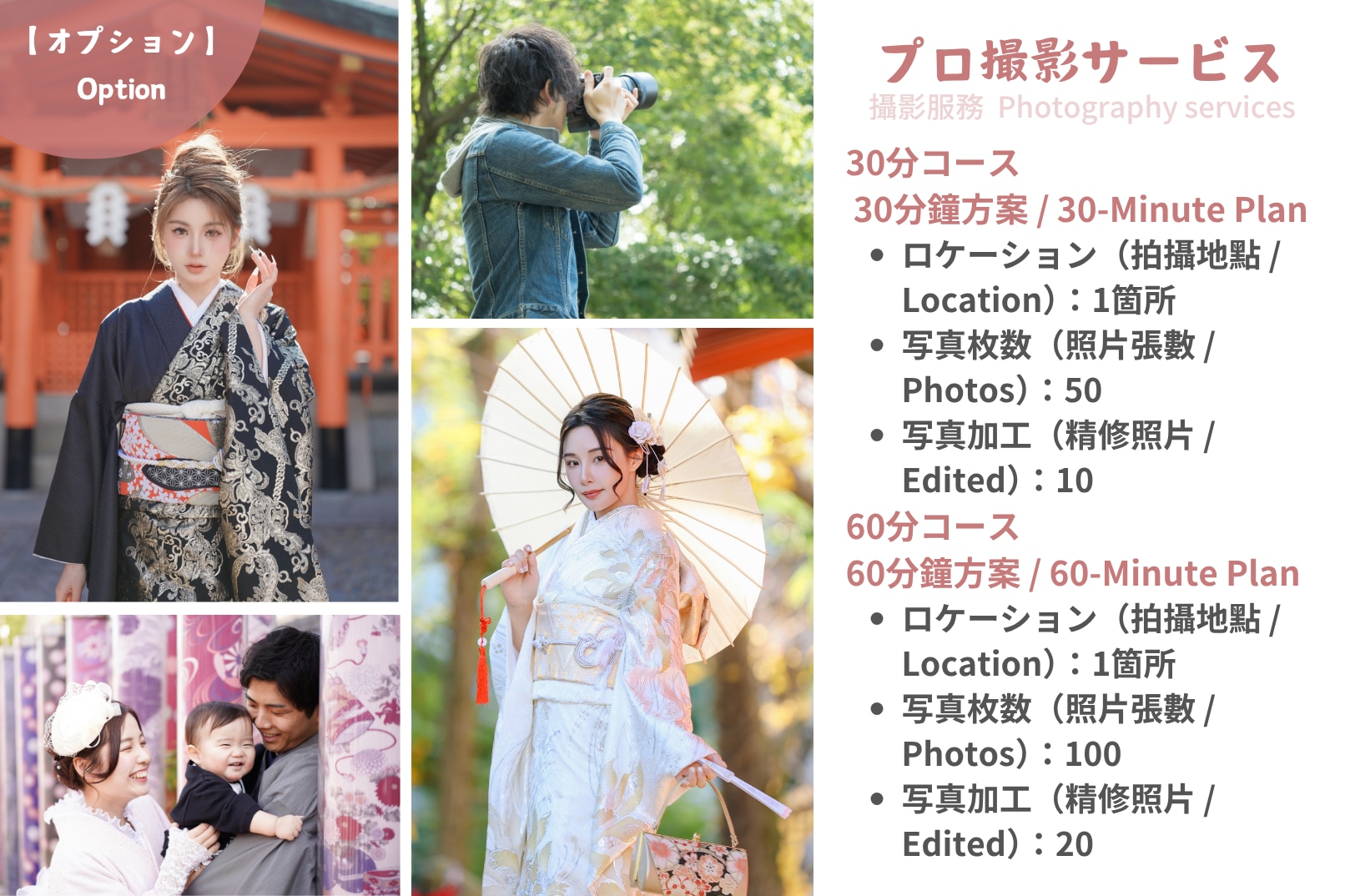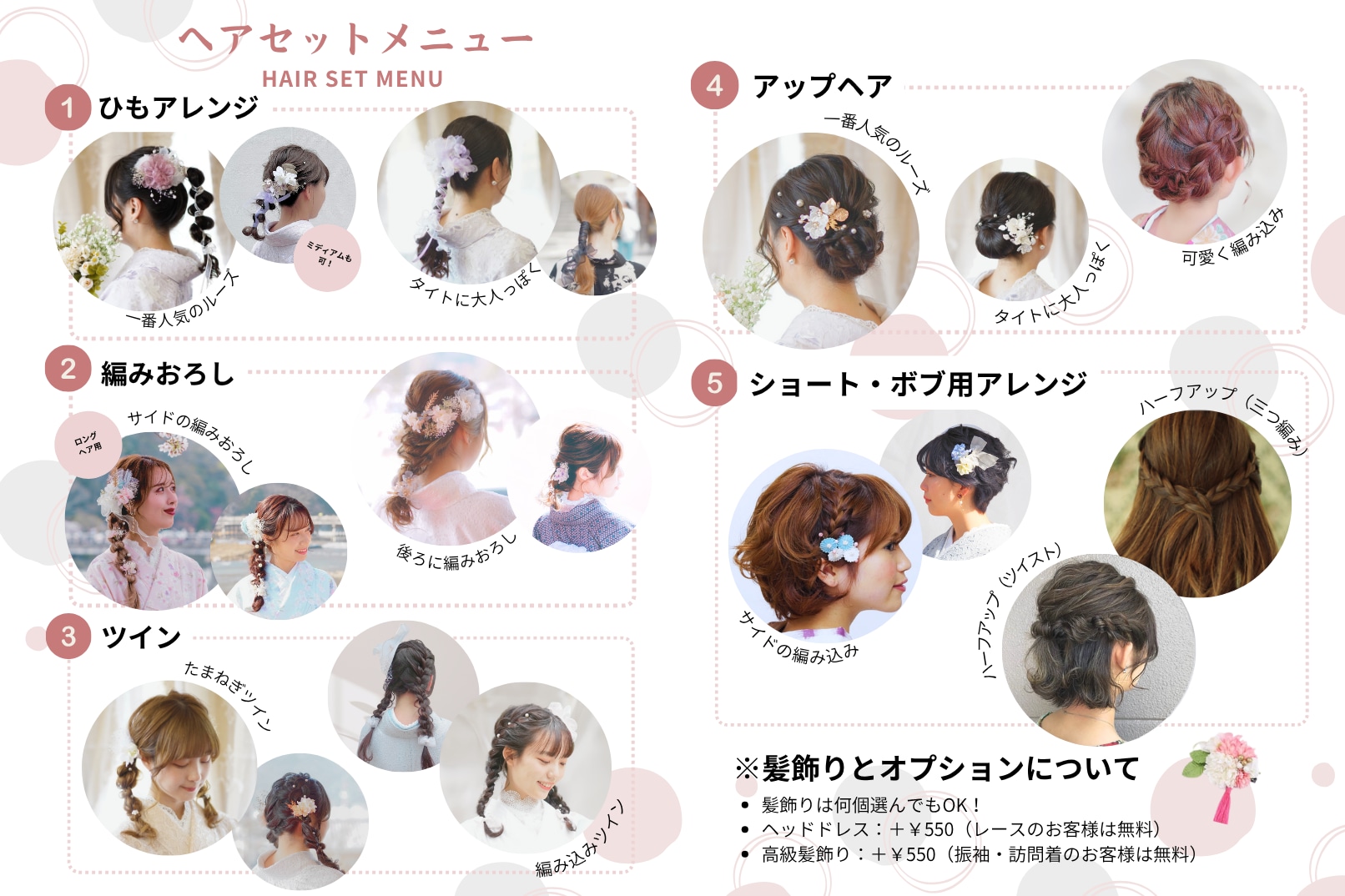 選擇您喜愛的和服或浴衣款式後,穿著和髮型設計就交給專業人士!