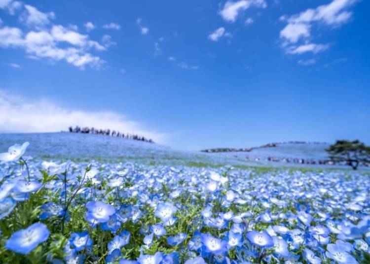 國營常陸海濱公園位於茨城縣常陸那珂市,從東京搭火車或其他大眾運輸工具約2小時車程,佔地200公頃。公園以四季花卉聞名,從鬱金香、水仙花到粉蝶花應有盡有。每年10月上旬至下旬,約2百萬株大波斯菊齊放,景色最為絢麗。