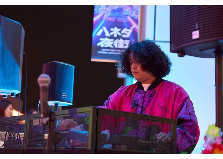 在毗鄰羽田機場的HICity,有一個可以一邊眺望魄力十足的飛機起降,一邊悠閒享受足浴的觀景台。在這個可以同時享受飛機和放鬆的特殊空間裡,於活動期間中,會出現DJ台,讓遊客可以享受「足浴DJ」的樂趣。這次的DJ之夜主要播放的是在世界各地備受矚目的日本City Pop和動畫・遊戲音樂。由代表日本不同世代的DJ們帶來音樂,簡直就是「日本獨有」的音樂寶庫。既懷舊又新穎、被洗鍊的City Pop旋律,以及讓人忍不住跟著隨之舞動的遊戲音樂的律動,響徹夜空。更棒的是,還有光與音連動配合的演出。隨著音樂的節奏,足浴周圍和空間的燈光會變得五彩斑斕,讓人感覺彷彿置身於一場美麗的視覺盛宴中。一邊眺望跑道上起降的飛機,一邊泡著足浴享受最酷的日本音樂,這樣的體驗,只有在「羽田夜市・Haneda Innovation City」才能享受到。
