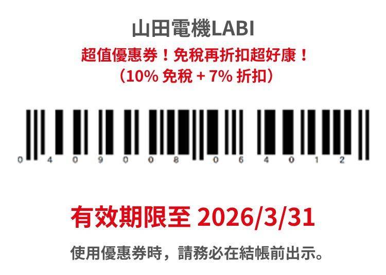 到BicCamera 使用以上的折扣券,除了10% 的免稅外,購買商品還能享受額外的折扣(可能有某些例外情況),只需在結帳時出示上面的圖片即可!